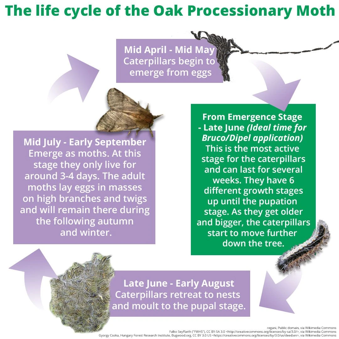 - Amenity situation – Can be used for control of Brown Tail and Oak Processionary in trees and shrubs and caterpillar control in box hedging.