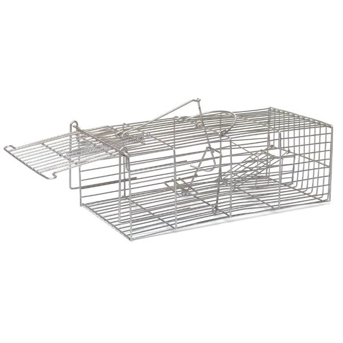 The entrance is quickly sprung closed when the rodent takes the bait off the pressure plate, safely trapping it inside. The cage also acts as a multi-catch trap with a one way door at the opposite end of trap which allows more pests to be caught in the trap.